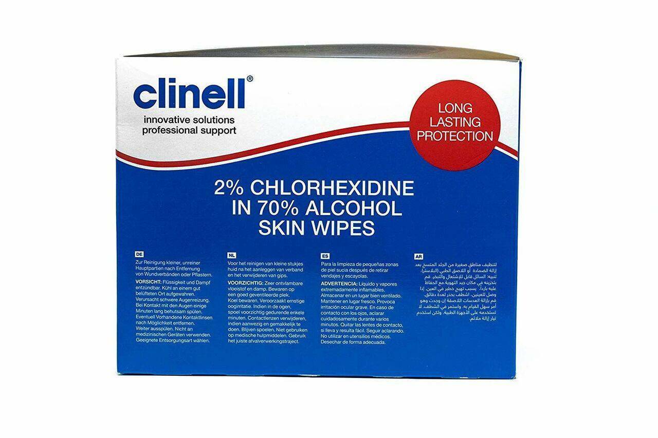 Clinell 2% Clorhexidina en 70% Alcohol Toallitas para la piel x 200